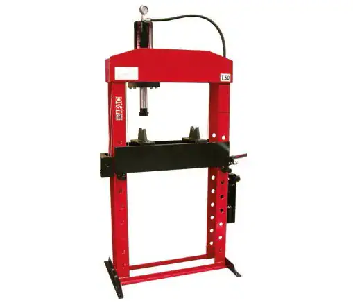 Хидравлична преса с подвижно бутало и лебедка за повдигане на работната маса.